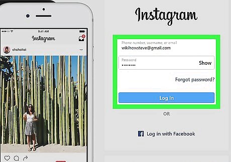 Log in to your Instagram account. Simply click the blue Log in link at the bottom of the sign-up pane, enter your username and password into the fields, and then click Log In.