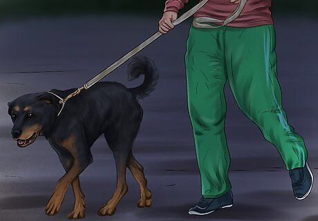 Stick to well-lit areas. When walking at night, try to stay in areas that are well-lit. Dark areas are a perfect place for crimes to take place. Don't try to cut through places like parks or alleys if they're dark. Staying in the light will keep you and your dog safer, plus make it easier to see where you're going.