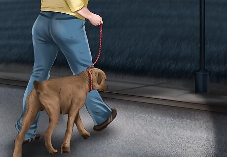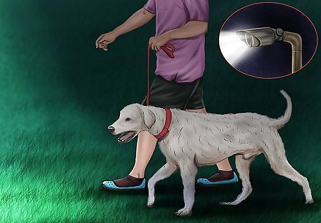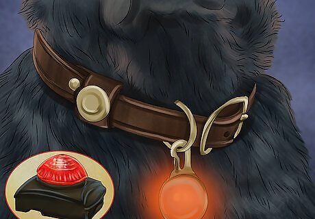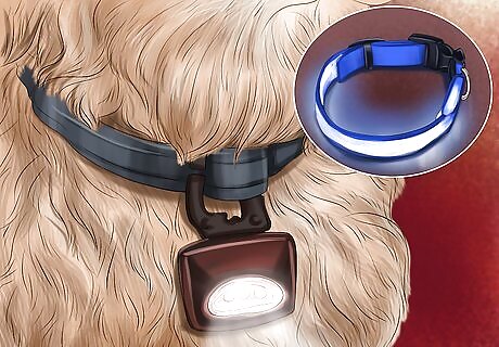 Buy a reflective or light-up collar. A reflective or light-up collar will help keep your dog safe at night, as it will make your dog more visible. This step is particularly important if your dog has a tendency to get away from you. You can find reflective or light-up collars at pet stores or online. You can also add reflective tape to your dog's collar.