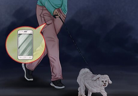 Be aware of your surroundings. It can be fun to listen to some tunes while you're taking a walk. However, that can distract you from your surroundings, making you less safe. Take the headphones out, and put your phone in your pocket. Take the time to enjoy being with your dog, instead.