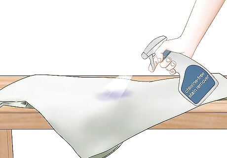 Pre-treat stains with a chlorine-free stain remover, if needed. Feel free to use a pre-treatment product to deal with stains, but check the product label to make sure it's chlorine-free first. Apply the pre-treatment directly to the stain and let it soak in for 5 minutes before tossing the sheets in the washing machine. Go with an enzymatic stain remover for oil and blood stains. Application instructions may vary from product to product, so be sure to check the packaging before using the stain remover.
