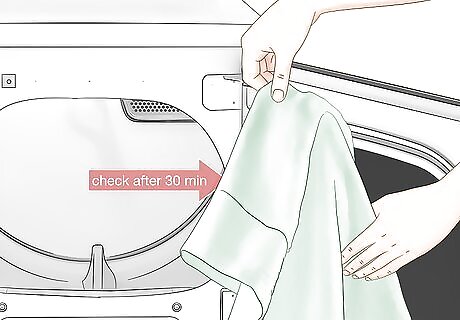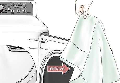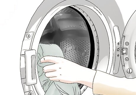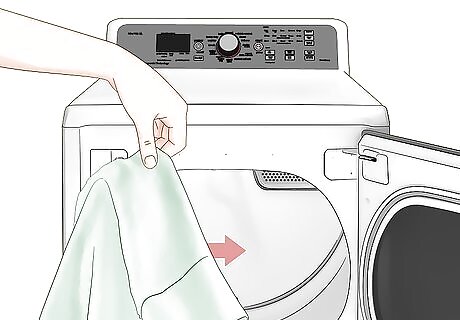 Transfer the sheets to a machine dryer if you aren't line-drying them. You may want to quickly shake out the pillowcases and sheets to straighten the hems before tossing each piece in the dryer. Transfer 1 piece of bedding at a time to confirm the linens aren’t twisted around each other. If you grab the whole load and shove it in the dryer without shaking out each piece, the fabric may dry unevenly or end up wrinkled. If the wet fabric feels a bit rough or stiff, don’t worry—this is totally normal. The sheets will soften back up during the drying process.