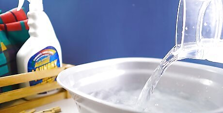Fill a large container with warm water if you're washing cotton sheets. If you have a bathtub, this works well, otherwise choose a container large enough to fit all of the sheets you’re washing. Fill the container or tub with warm water so there’s enough to saturate the cotton sheets completely. If your sheets are made out of a synthetic fabric so they're a cotton blend, warm water is still okay to use. Read the care label on your sheets to check that warm water is best for them.