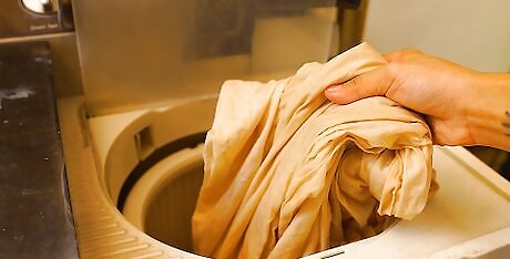 Squeeze the extra water out of the sheets gently. When all of the detergent is rinsed out of the sheets, squeeze them gently to get rid of as much water as possible. Avoid wringing or twisting the sheets too aggressively so you don’t accidentally damage them.