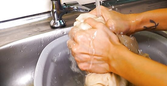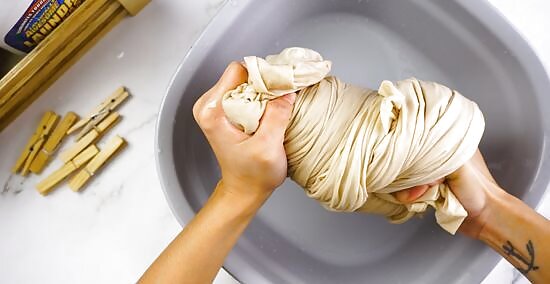 Submerge your sheets in the water and knead them for 5 minutes. Place your sheets in the container of water and press down on them so they’re completely in the water. Move the sheets around in the water while kneading them with your hands to agitate them so soap reaches every area. Continue doing this for 5 minutes so they're clean. Avoid scrubbing the sheets or moving them around too quickly or aggressively. If your sheets are especially dirty, consider letting them soak in the suds for 10-15 minutes after agitating them in the water. Be very gentle if you're washing silk sheets.