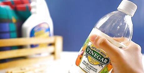 Treat stains with a stain remover before washing. If you have a stain on your sheets that you’d like to treat before you start washing them, spray a laundry stain remover on the area or pour white vinegar on the spot instead. Let the stain remover or vinegar sit for 10-15 minutes before starting the washing process. It’s a good idea to rinse the white vinegar out as much as possible before washing the sheets. Make sure the spot treatment spray works on the specific type of fabric you’re washing.