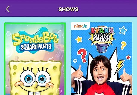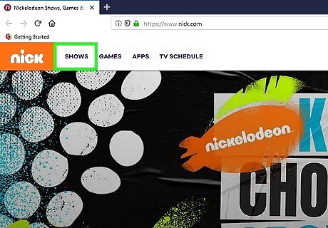 Hover over the SHOWS tab on the top-left. This button is located next to the orange "nick" logo on the menu bar at the top. Hovering will open the list of available shows.
