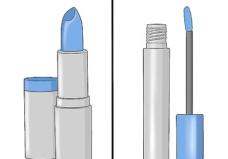 Try an electric blue lipstick. If you are feeling extra bold and adventurous, then you might consider wearing an electric blue lipstick. This shade is lighter and brighter than a navy or denim lip, so it will definitely make a statement. Electric blue lipsticks might work best for a spring or summer look, since they are light and bright. You can wear electric blue lipstick with bare skin or amp up the drama with a bold cat eye look. Electric blue lipsticks look great with all black or white ensembles.