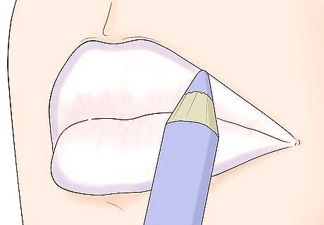 Line your lips. Start by lining your lips with an eyeliner or lip liner in a color that is similar to your blue lipstick. For example, you can use an eggplant lip liner if you are planning to wear a navy lipstick. Or, you can just use a navy blue eyeliner as a lip liner. Line your lips along the outer edge of your lips, but keep it on your lips. Don’t apply the liner outside of your lip line. Avoid using neutral-color liner or you could make your lipstick look muddy and dull. A clear liner is a good choice for blue lipstick.