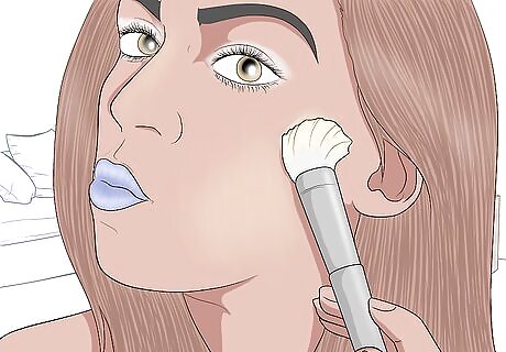 Add a some bronzer and highlights. Wearing such a dark color may cause your skin tone to appear lighter than usual. To avoid looking washed out or pale, contour your face with some bronzer and highlight in a few areas as well, such as on your cheekbones and forehead. Skip on the blush while you are wearing blue lipstick. It’s best to avoid adding too much color to your face because it will compete with the blue lipstick.