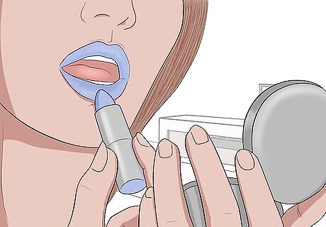 Plan for regular touch-ups. Blue lipstick looks best when it is bold and even, so it is important to touch it up regularly. Plan to touch it up once every hour or so, and after eating or drinking anything. Keep a compact mirror handy so you can touch up on the go.
