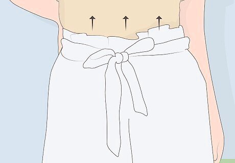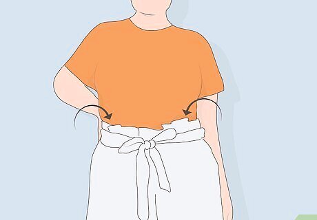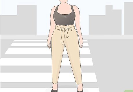 Purchase paper bag pants that are tight in the waist. Paper bag pants shouldn’t require a belt or be loose when you put them on. Make sure your pants stay up on their own and sit at your natural waistline just below the bottom of your ribs. Some paper bag pants have elastic in the waist so that they conform naturally to your body.