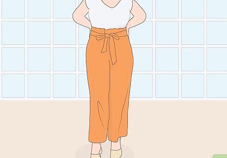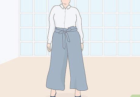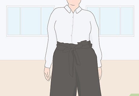 Use solid-colored tops to keep your pants professional. Floral is fun for the beach, but it can be a little bit much for the office. Try to wear solid-colored tops that go with the color of your pants to keep a professional demeanor in your workplace. A white top with a black pair of paper bag pants is a simple outfit that looks very put together.