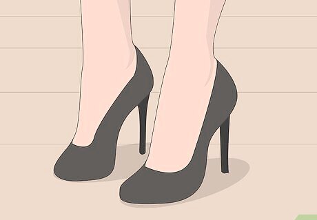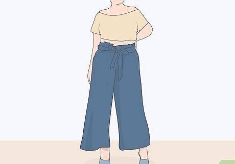 Elevate your pants with a pair of slim heels. If you’re going to a party or an event, you can make your paper bag pants more formal by putting on a pair of slim heels. Black heels make your outfit more chic and expensive looking, while colored heels that match your pants make you look fashion-forward. Chunky heels can add weight to your bottom half with these wide-legged pants, so it’s best to stick with slim heels.