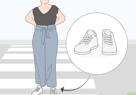 Throw on some sneakers to keep these pants casual. Paper bag pants are super versatile, and you can dress them down by wearing a pair of sneakers that go well with your outfit. Try on some high top sneakers for a seamless look, or create definition in your legs with low top ones. Sneakers and paper bag pants create a nice combination of femininity and streetwear.