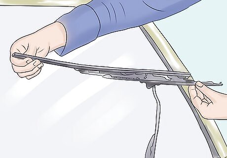 Replace your windshield wipers and wiper fluid. Poor visibility is extremely dangerous while driving, especially in winter, so it's important to ensure that your windshield wipers are in good working condition. Old blades are prone to cracking, tearing or simply not working when faced with the icy precipitation that's beating against your windshield. Examine yours to see whether the rubber is cracked or frayed, and keep in mind that wiper blades are supposed to be replaced every 6 to 12 months. You could also consider buying wiper blades specifically designed for winter weather. Fill the windshield washer reservoir with fresh washer fluid. Some washer fluids have a defroster additive and a lower freezing temperature, making them a good choice for the cold winter months.