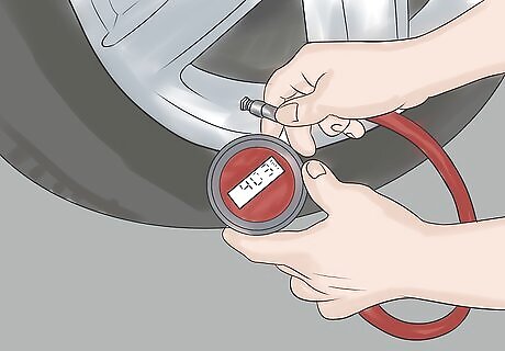 Check the tire pressure on all of your tires. Maintaining the correct tire pressure for your vehicle is very important during the winter months. Deflated tires have decreased traction, making them more prone to slipping on icy surfaces. Keep in mind that your tire pressure will be affected by the decrease in temperature — in fact, for every 10 degree F drop in temperature, the air pressure in your tires will be reduced by about 1 PSI. Therefore, it's important to keep an eye on your tires throughout the winter months. Use a tire gauge to see if your tires meet the standards set for your vehicle. If you're not familiar with the proper level for your vehicle, check the inside edge of your driver's side door frame. There should be a sticker there that indicates several things, including suggested tire pressure. If you do not have a tire gauge, you can usually find one at your local gas station, where you can also fill your tires with air. This is usually free or costs very little. While checking the air pressure, it's also important to check how your tires are wearing. If they need replacing or rotating, do this before winter weather hits.