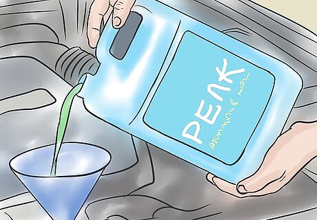 Replace old coolant with antifreeze. It's highly important that your engine contains the correct ratio of anti-freeze to water before the cold winter months set in, otherwise the coolant could freeze, causing the engine to overheat and potentially blow a gasket. A ratio of 50% anti-freeze to 50% water is recommended for most cars, though in some circumstances this is increased to 60% anti-freeze, 40% water. Luckily, you can buy pre-mixed bottles of anti-freeze and water at the gas station. If you're not sure about the current ratio of antifreeze to water in your car's radiator fluid, you can pick up an anti-freeze tester at your local auto parts store for relatively cheap. If the ratio is incorrect, you will need to flush your coolant system before you can refill it with the correct ratio. If this is not something you know how to do, take your car to a mechanic or oil change location. There is, however, no need to flush your system if you drain and refill on scheduled maintenance.