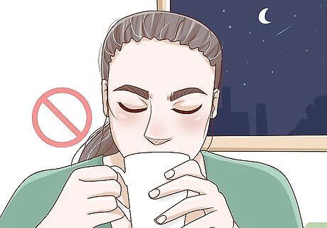 Avoid caffeine and other stimulants near the end of your shift. It’s okay to drink a little coffee early in your shift to help perk you up, but drinking caffeine too close to bedtime will make it harder for you to get to sleep. Avoid consuming coffee, energy drinks, or any other stimulants in the last 3-4 hours before you need to wrap up your shift and go home.Warning: Just like caffeine, alcohol can have a negative impact on your sleep quality. You might be tempted to use alcohol to help you nod off, but it’s likely to make you sleep poorly and leave you feeling more tired during your shift.