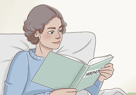 Develop a relaxing bedtime routine. If you have trouble unwinding before bed, set aside 30 minutes or an hour before you sleep to do things that help you relax. For example, you might: Read a book Listen to peaceful music Take a warm shower or bath Do light stretches or yoga Meditate Drink a soothing herbal tea or some warm milk