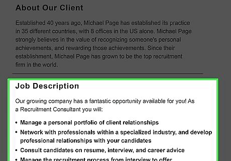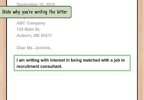 Investigate what kinds of jobs the recruiter usually matches with. When writing to a recruiter, you'll want to make sure that you're applying for jobs that you would be a fit for. For example, if you're looking for a job in sales, you wouldn't write to a recruiter who typically matches people for custodial positions. Recruiters will typically say so if they recruit for certain jobs and positions, so make sure you read their website or posting carefully.