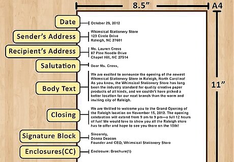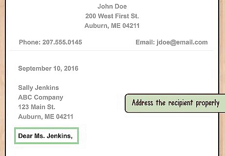Address the recipient properly. Remember that this is a formal business letter. You should address the recipient as Mr. or Mrs. Also use "Dear" as a greeting; "Hi" or "Hello" are not appropriate for a business letter. If you're unaware of the recipient's gender, then use the person's full name after "Dear."