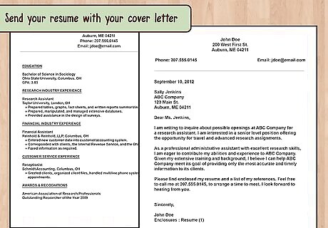Send your resume with your cover letter. Don't forget to attach your resume when you send your cover letter. If you don't send your resume, it's almost certain that the recruiter won't answer your cover letter or refer you for a position.