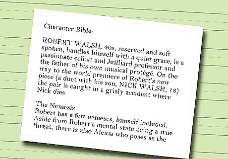 Create a character bible. Even more than a plot outline, characters can make or break your story. List the characters and give a complete description of them, physically and characteristics like if they are smart, good and likeable or, as it tends to be these days, if they are dumb, evil and hateful but in a likeable way (see Richard III by W. Shakespeare for ideas) then you have got yourself a movie. If they are the same people you have seen again and again and have been bored with yourself at the movie theater, keep thinking. If your protagonists and antagonists are characters, make sure you list out their flaws. During the course of the story the protagonist overcomes his/her/their flaws and the antagonist flaws becomes his/her/their downfall.