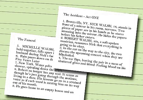 Write out every scene heading on a note card, along with the characters in that scene. This will give you the general flow of the scripts and make it easier to tell where the story is moving.