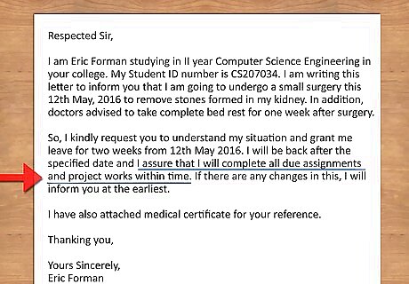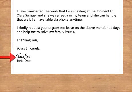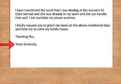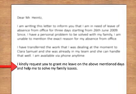 Write in a respectful tone. Whatever the circumstances, it is important that you request a leave of absence politely. You should, in other words, request rather than demand an absence, even if you are legally entitled to it. Asking nicely can minimize confrontation with management.