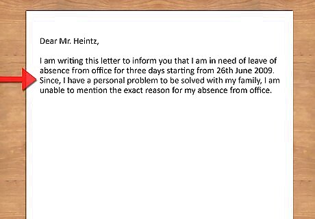 Be transparent about your reasons. If your absence request is for personal reasons, it is important to be as transparent as possible with your department, so that your department can determine if your particular situation qualifies you for leave.