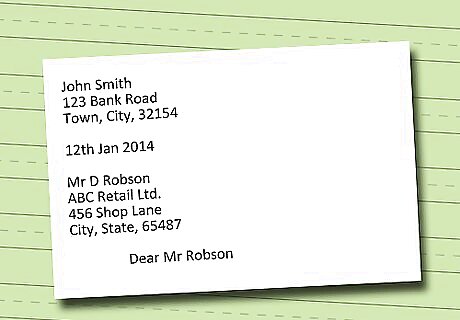 Address the letter to a specific person. Use the name provided by the job posting. If you have been recommended for the job by a friend, ask for the exact spelling of the name of the person in charge of hiring. If you don't have a specific contact for the cover letter, use "Dear Human Resources" or "Dear Sir or Madam." Do some online research if you aren't sure who to address the cover letter to. Who is the head of the department to which you are applying? This information can usually be found on the company website. If not, call the company and ask for this information. If you still can't find the right info, you could address your cover letter to the head of Human Resources or Company Name Job Title Search Committee.