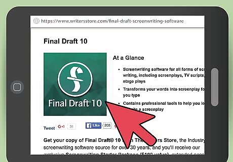 Download a screenwriting program to your computer. If you are worried about the time and effort it takes to format a screenplay, you may try using a screenwriting program. You can find screenwriting programs online or buy them at your local computer software store. Many of these programs will make it easier to format your screenplay properly. You may need to spend some money to buy a screenwriting program that is of high quality and compatible with your computer. Some of the more common screenwriting programs include Final Draft and Contour.