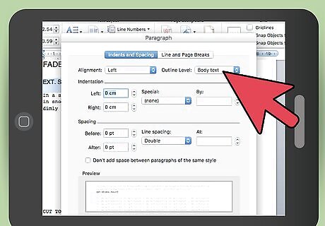 Make sure the margin spacing is correct. If you are adjusting the margins in the screenplay manually using your keyboard, you should make sure your margins are always correct for each notation in the script. Do not try to narrow your margins in an attempt to cram in more content into the script. Scripts with incorrect margins may be seen as unprofessional and inaccurate, as it is difficult to determine the running time of the film if the margins are off. Make sure all scene headings have a margin of 1.7” to the left and 1.1” to the right. Leave two blank lines before every scene heading. Check that all dialogue has a left margin of 2.7” and a right margin of 2.4”. The names of characters over dialogue should have a left margin of 4.1”. All parenthetical directions within the dialogue should have a left margin of 3.4” and a right margin of 3.1”. The top page margin should be 0.5” or three single lines before the page number. The bottom page margin should be 0.5” or three single lines from the end of a scene.