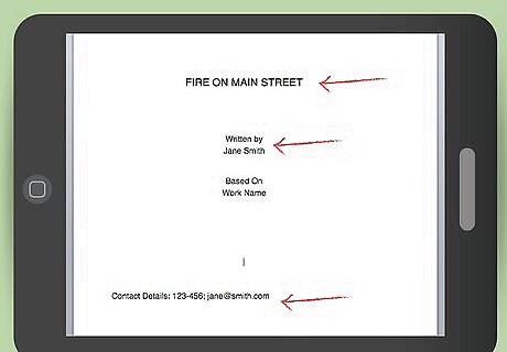 Include a title page. Your screenplay should have a title page, as this will make it appear more professional and polished. The title page should contain the title of the screenplay, the writer’s name, and contact information. Do not include any other information on the title page, as you do not want to appear cluttered or unprofessional. Make sure the title appears in quotation marks and in all capitals in the center of the page. For example, “FIRE ON MAIN STREET.” There should be four blank lines between the title and the author’s name. The writer’s name should be centered and appear one line below “Written by.” You can include your basic contact information at the left margin of the title page. The last line of your contact information should appear one inch from the bottom of the page. You do not need to include a draft date on the title page.