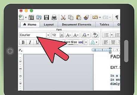 Use the right font. You should always use 12-point font in black colored type in your screenplay. Go for a font called Courier, not Courier New, or Prestige Pica, as these are the standard fonts used in screenplays. You should make sure the fonts are fixed-pitch so they create ten characters per horizontal inch and six lines per vertical inch.