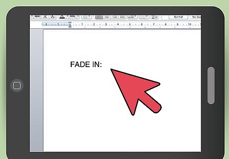 Put “FADE IN” on the first page. The first page of your screenplay should always include a “FADE IN” note at the top of the page as the first item on the page. Make sure the letters are in all capitals and are flush to the left margin of the page. Opening your screenplay with this note will indicate the screenplay has been formatted correctly, as you do not want to simply launch into your story right away. You should give the reader a sense of how the scene will open on the very first page.