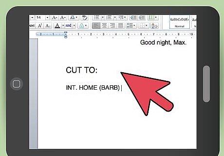 Include a transition note at the end of every scene. Transition notes are used in screenplays to let the reader know how the action will transition from scene to scene. Transition notes will also be useful for the editor of the film in post-production, as they will have a better sense of how you would like to transition from scene to scene. Common transitions used in screenplays include “FADE IN”, “FADE OUT”, “CUT TO”, and “DISSOLVE TO”. You may choose “FADE IN” or “FADE OUT” if you would like to gradually open and then gradually close a scene. “CUT TO” means a quick jump to a new scene. “DISSOLVE TO” means that as one scene fades out, a new scene fades into place. Scene transitions should have a left margin of 6.0”. They should be in all capitals in the script. #*You should include a new scene heading after a transition note so the reader is situated in a new setting or scene.