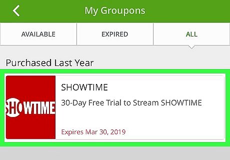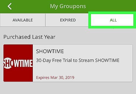 Tap the ALL tab on the top-right. This will allow you to view a list of all the deals you've purchased in the past.