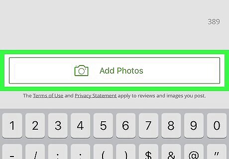 Tap the Add Photos button to add pictures to your review (optional). If you're reviewing a retail product, you can tap this button and add pictures of the item you've received from your Camera Roll .