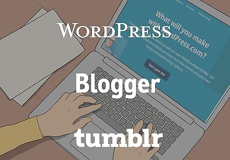 Choose a platform to host your blog for the easiest option. There are many free websites that will host your blog, but they may not be as customizable. Decide if you’d like to spend some money on making your blog look the way that you’d like it to, or if you are fine with a slightly less customizable option. Blogger.com, WordPress.com, and Tumblr.com are some free blogging sites that can help you get started with your blog. WordPress.org is one of the top blogging sites. It costs $5 per month as of December 2019.