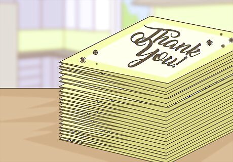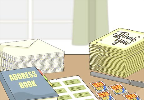 Collect the supplies you need for writing a thank you note. You need only a few things, but having them gathered together helps you avoid having to stop and start while writing your note. Thank you cards and envelopes Pens Address book Stamps Return address labels Nice stationery is important. A beautiful thank you card is like a little present in the recipient's mailbox.