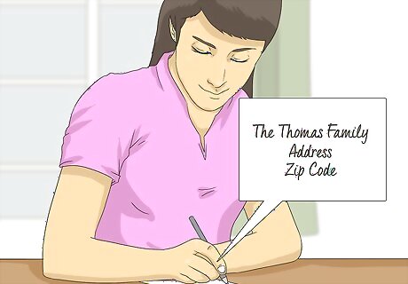 Address the card to your recipient. In neat handwriting on the front of the envelope, write the recipient's address. It is important to include all parts of the address, including the zip code. If the note is going to more than one person, be sure to address it as “Mr. and Mrs. Thomas,” for example. Other options include “Dr. and Mrs.,” “Dr. and Dr.,” “Rev. and Mrs.,” and “The Thomas Family.”