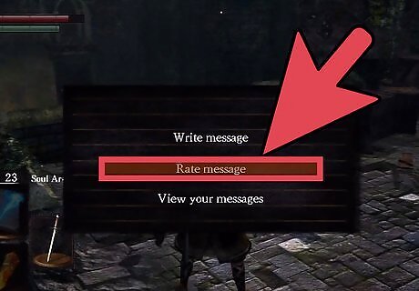 Equip the item and use it by selecting it from your inventory or pressing the X button on your Xbox 360 controller while it is equipped. Your character will pause and bend over to write a message on the ground. A menu will then pop up with the options "Write Message", "Rate Message" and "View Your Messages".