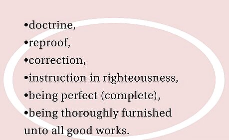 Think about, and explain in your notes, reasons why the text(s) you are reading are especially "profitable"; consider making notes about your knowledge and understanding of concepts such as: doctrine, reproof, correction, instruction in righteousness, being perfect (complete), being thoroughly furnished unto all good works.
