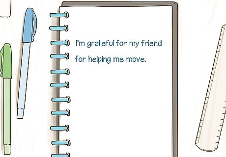 Use your journal to reflect on things you are grateful for. Gratitude journaling is scientifically proven to help people live happier, healthier lives. Try writing down 5 things you are grateful for, with specific detail for each one. For example, you could say, “I’m grateful for my friend for helping me move,” instead of just “I’m grateful for my friends.” It doesn’t have to be a major event to be grateful for – you could even say “I’m grateful I was able to get to work on time”, or “I’m grateful for the pasta I had for dinner.”