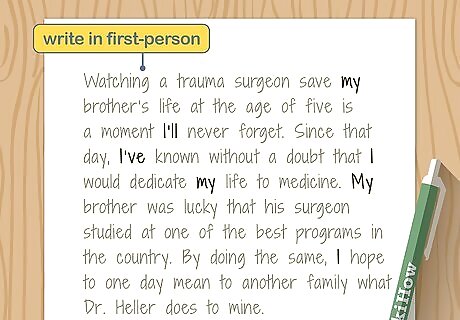 Write in the first-person. Usually, teachers and professors drill it into students that they have to write essays in the third-person. Reflective writing, however, is your chance to finally say “I” and “we” in your writing for school. Of course, there will be moments when you’ll write about what other people thought and said, but the focus should be on your personal reactions and thoughts. Even though you are using first-person, you should still use an academic tone and avoid slang and abbreviations.