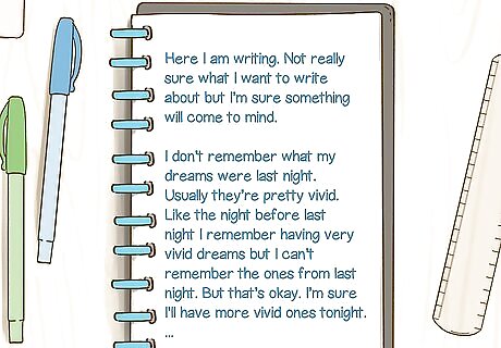 Set aside a few minutes to write every day or once a week. Writing a short amount everyday is a good way to keep journaling casual. Set up a routine for yourself, like journaling right before bed or when you wake up in the morning. If journaling everyday isn’t feasible for you though, set a goal you can meet, like journaling every Sunday afternoon to reflect on the week. If you need further encouragement to write, consider setting a 5 minute timer for yourself, and do your journaling during that period of time.