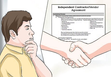Evaluate your needs. Before attempting to enter into a vendor contract, assess your needs. Try to determine exactly what services you’d like a vendor to provide. Determine a length of time that you’ll need the vendor to serve you if it is not a one-time event. Consider using a Request for Proposal (RFP) for all vendors to fill out and respond to. This can later be incorporated into your vendor contract, since it will include the scope of work and expected performances.