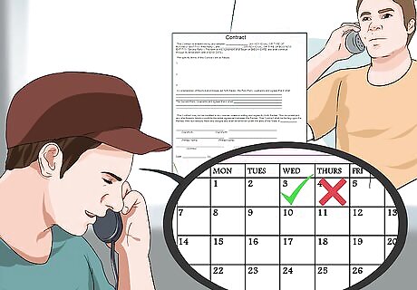 Provide specific dates. Contracts should provide specific dates of service. For continuing service, a start and end date should be provided, as well as the date that the contract was signed. If there is no end date, the contract should provide for a means of terminating the contract in the future. For example, the contract may state that “Shiny Cleaners will conduct the initial cleaning on April 2, 2015 and clean every subsequent Thursday until such time as either party wishes to terminate the service. Termination requires 2 weeks of notice by either party.”